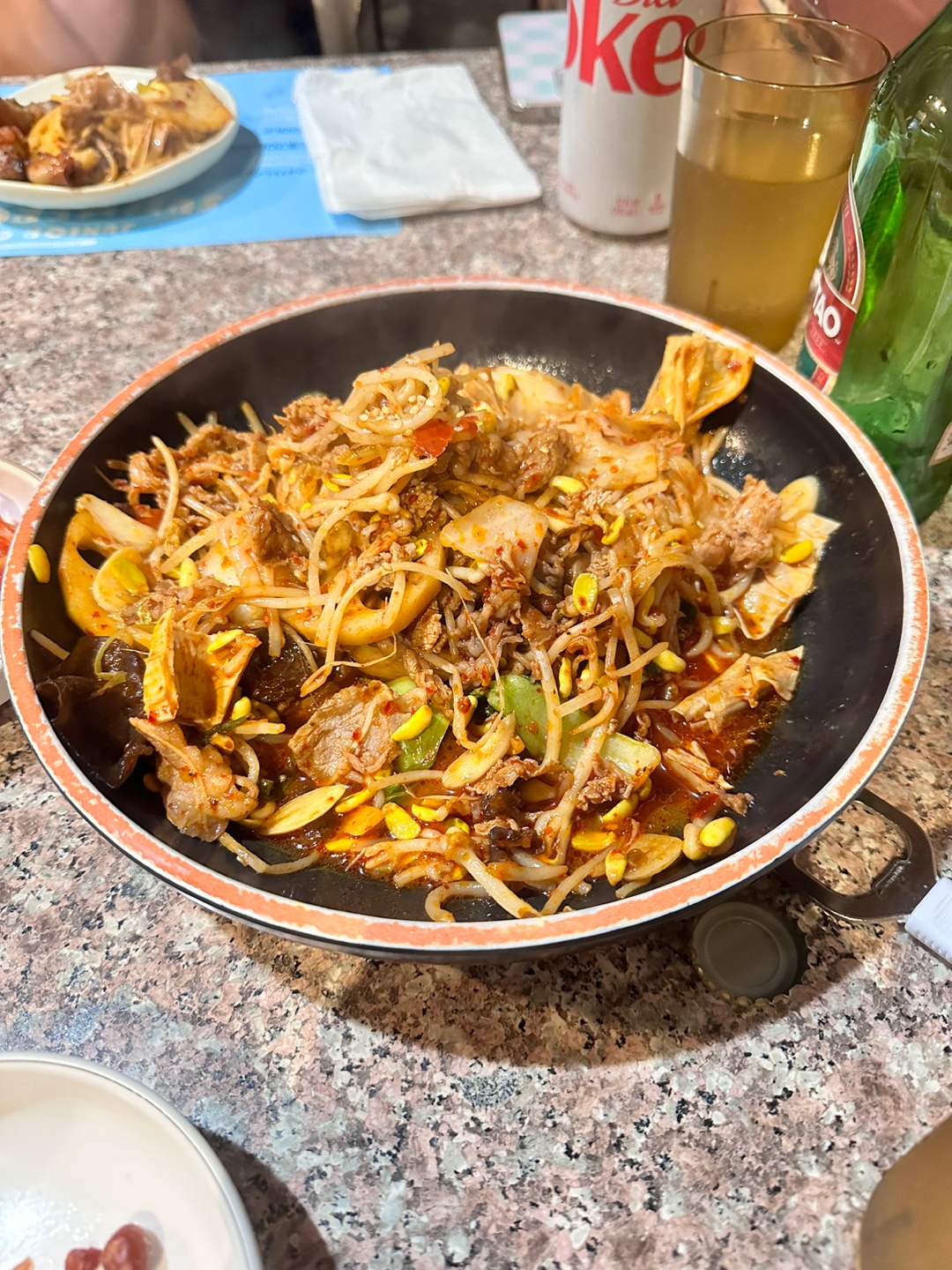 우리는 다양한 양꼬치와 마라샹궈를 주문했다.